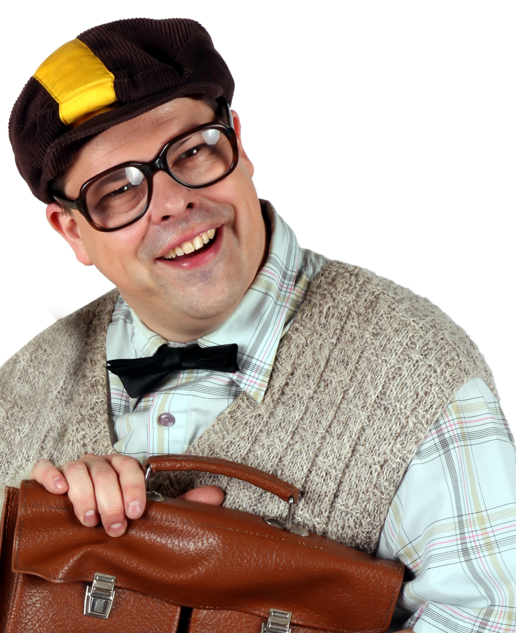 Olli sieht aus wie eine Mischung aus gewitztem Pennäler und biederem Finanzbeamten. Es scheint, als könnte er kein Wässerchen trüben. Dabei hat er es faustdick hinter den Ohren. Gekonnt schlüpft er in die Rolle des Loosers, der ein ums andere Mal an der Tücke des Objektes scheitert.