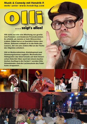 Olli ist Muttersöhnchen, Einfaltspinsel und Stimmungskanone zugleich. Musikalischer Höhepunkt: das Gitarrensolo auf dem historischen Holz-Ski! Aber auch bei einem musikalischen Ausflug in die Formel 1 werden Ollis Stimmbänder und die Lachmuskeln des Publikums strapaziert . . .