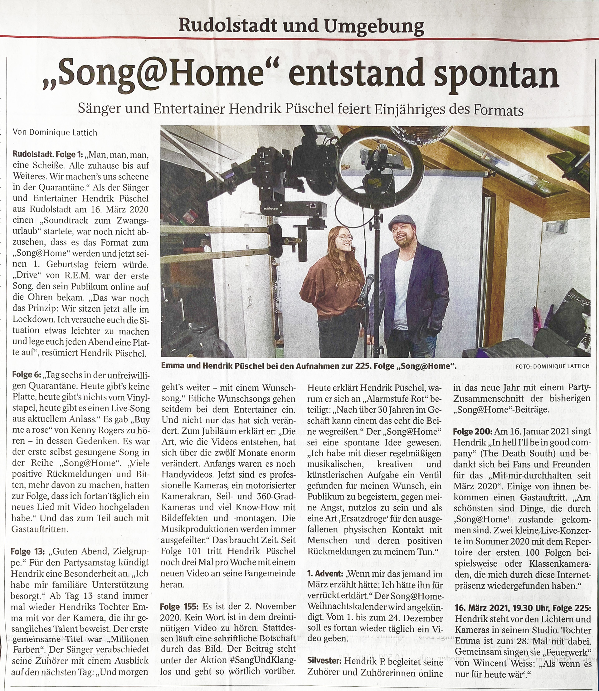 Nach 1 Jahr Song@Home war es Zeit für eine kleine Bilanz in der OTZ vom 17.03.2021: