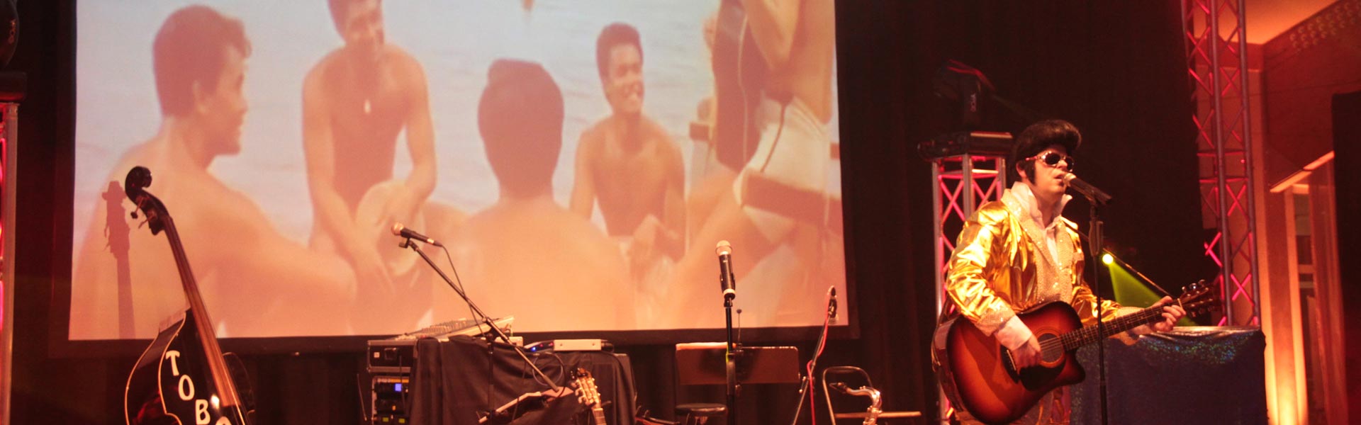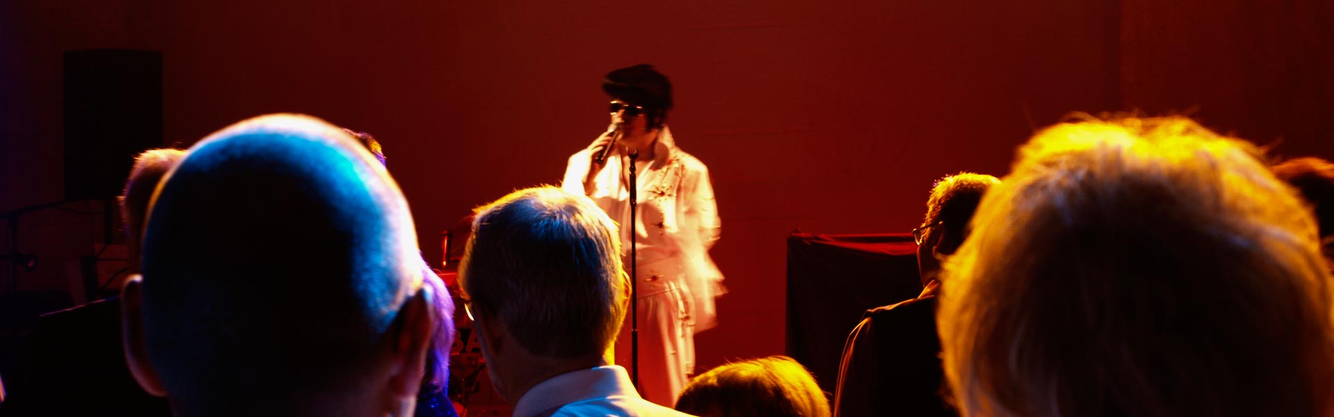 Elvis‘ größte Hits wie z.B. "Suspicious Minds", "in the Ghetto", "Hound Dog", "Teddybear", "Devil In Disguise", "Viva Las Vegas", . . . erklingen absolut authentisch und sind skurriler Gegenpol zu den amüsanten Deutsch-Englischen Moderationen.
